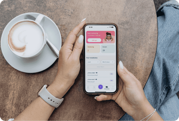Wiederhole Lektionen, übe Gelerntes oder bereite du dich auf deine nächste Unterrichtsstunde vor – jederzeit, auf deinem Computer oder in unserer App. Wo auch immer du bist, dein Fortschritt ist nur einen Klick entfernt.