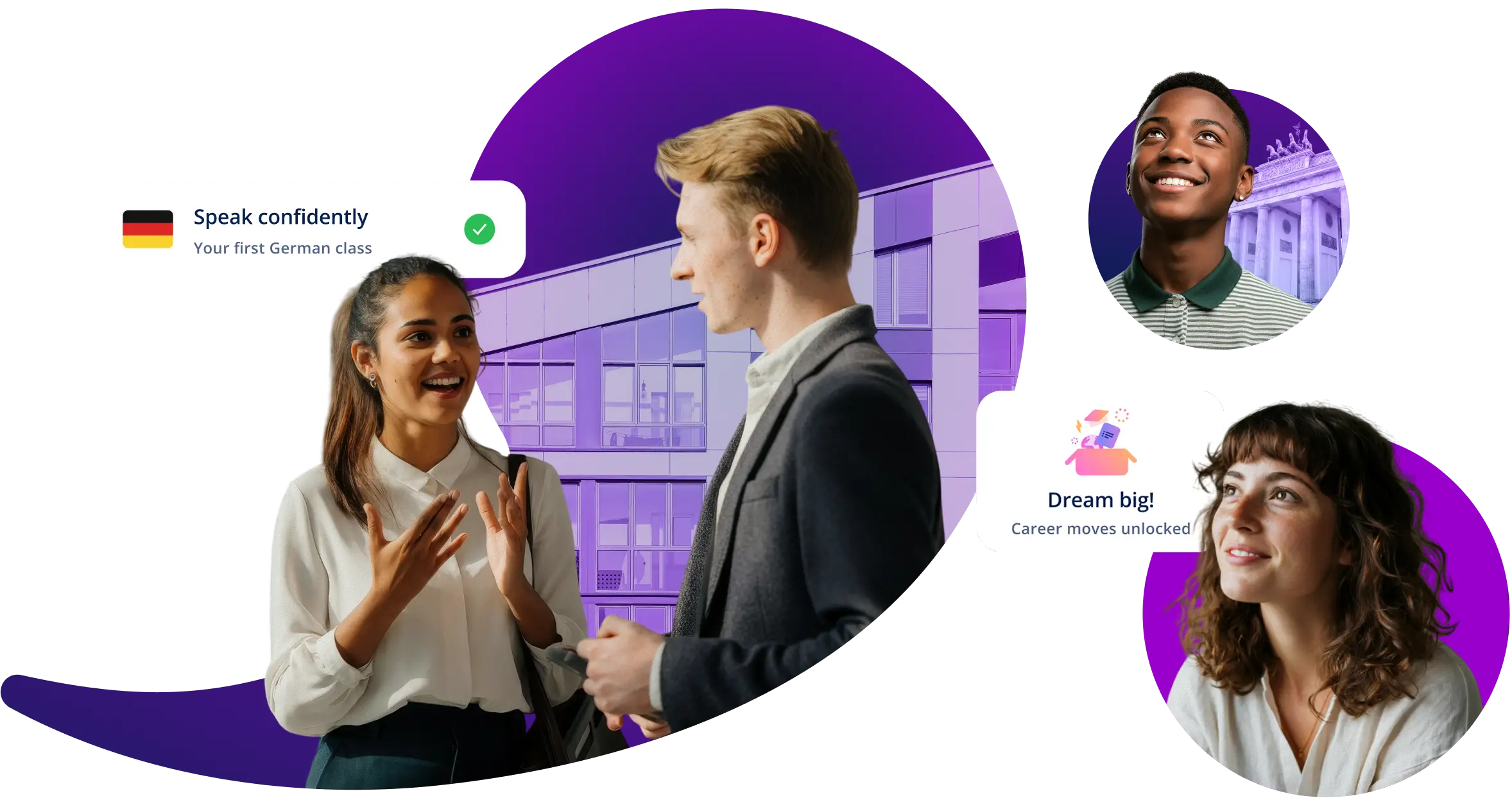 • Speak with confidence – learn German for real conversations in daily life and work.