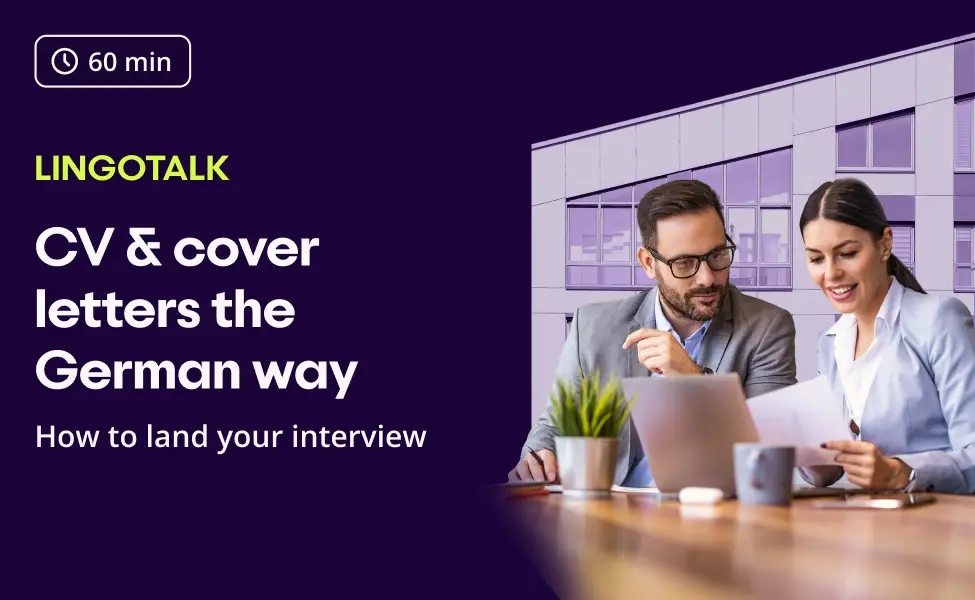 Job hunting in Germany and not hearing back? Crafting a CV and cover letter that land you an interview can be tough, especially with cultural expectations and language barriers. You’re not alone — and this free 60-minute live webinar is here to help. With Viktoria, a recruiter at Lingoda, as our expert guest, you’ll learn what German recruiters really look for, how to avoid the most common CV and cover letter mistakes, and how to write with confidence in professional German. You’ll also get insider tips on tailoring your application and preparing for the first recruiter call — plus the chance to get your questions answered live. Ready to go from overlooked to interview-ready? Sign up now and take your next step toward a job in Germany.