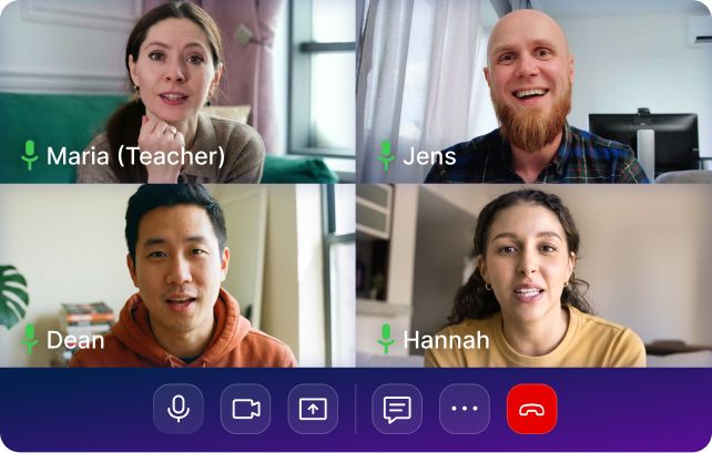 Obtén 4 clases en vivo al mes com un profesor certificado para practicar tu fluidez, recibir guía y fortalecer tus habilidades con retroalimentación inmediata. Elige el horario y el tema de clase que más te convenga según los cupos disponibles en nuestro calendario global.